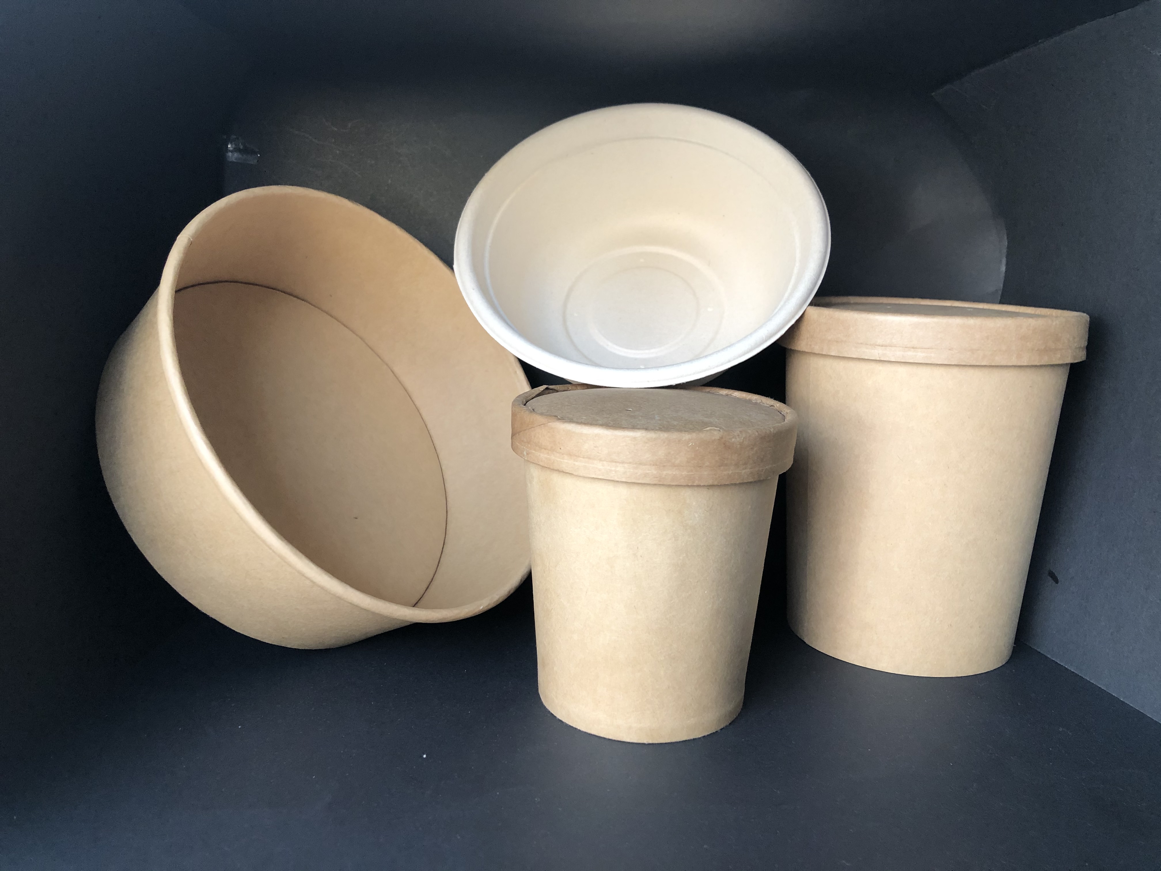 Descripción: Portacomidas y tazas de alimentos biodegradables